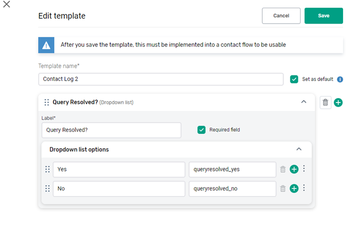 You should bear in mind that any changes made to this may affect how the Contact log appears to agents as this will have been configured within Amazon Connect contact flows, so it may be useful to test this within a UAT environment before making changes in a live environment. We would also recommend using an agreed naming convention to make it clear what each configuration is used for. - Set as Default: