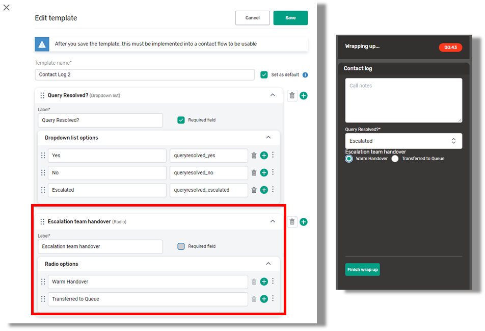 You can also specify if these question is a required field – namely the Agent has to complete it before being allowed to finish ACW.