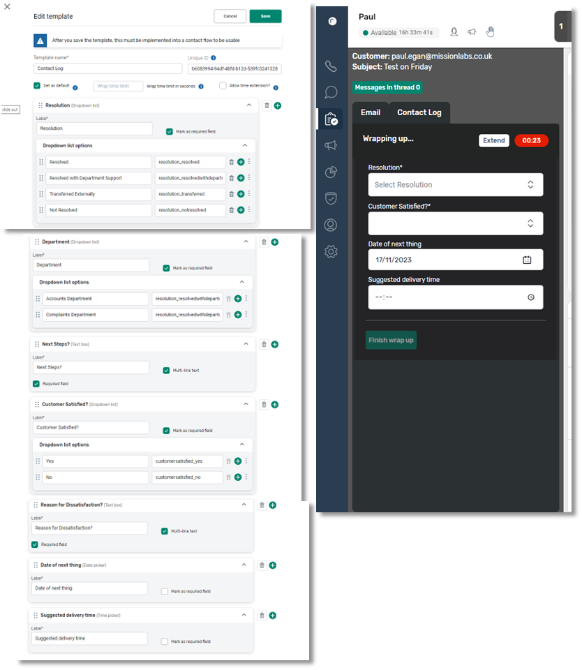 An example of that is below, and how that might look to an Agent. However if the company setup an escalation process to a specialist team, they might want to be able to track this, so would want to maybe add more to the contact log screen.