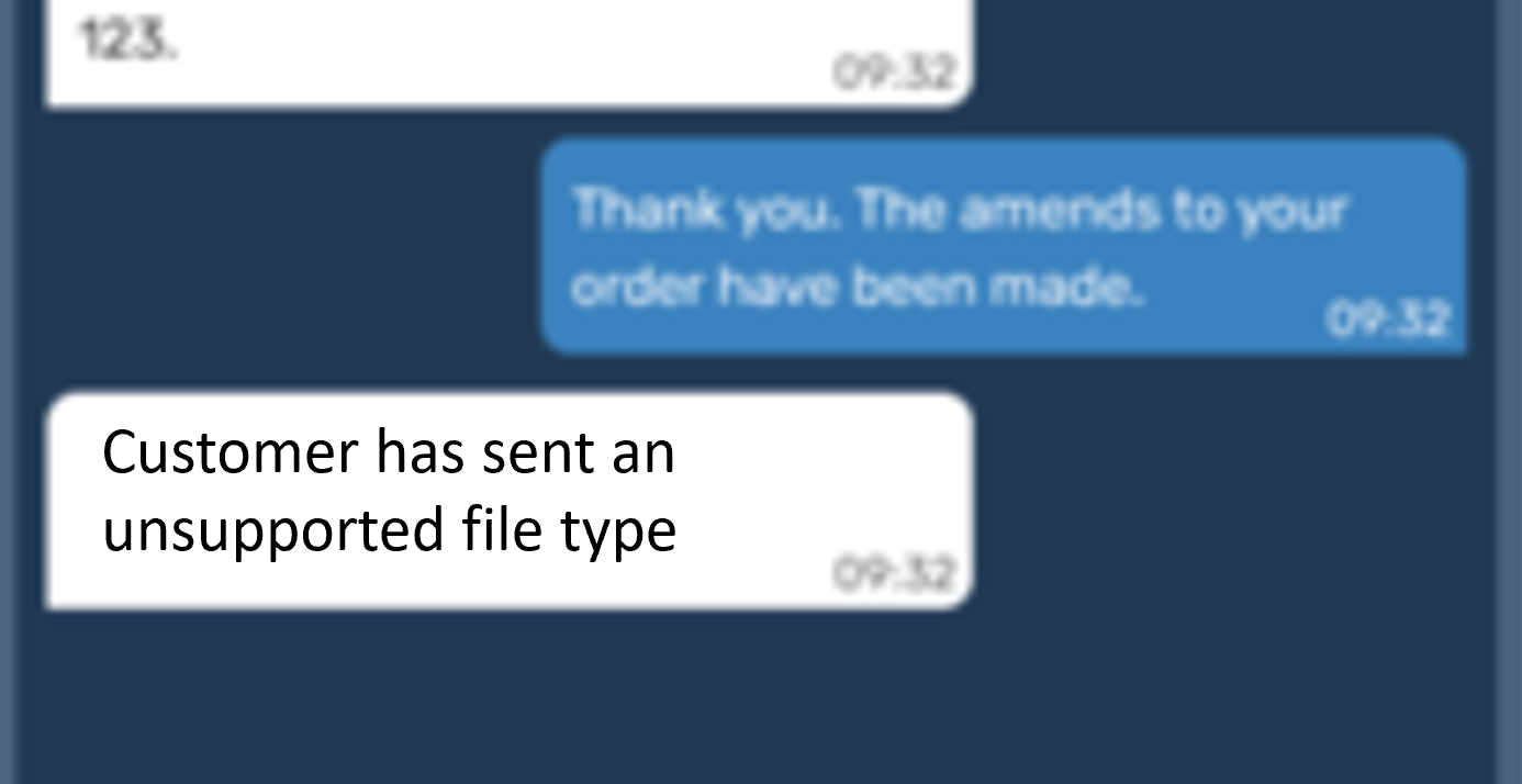 A customer may send in a message with accompanied by unsupported file type , this could be a GIF or an animation / effect for example.