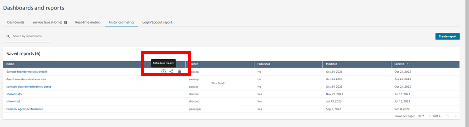 From this list page you can then select a report and delete it, or choose to share it or schedule it as required.