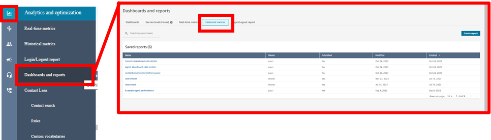 Historic Reporting Metrics in Amazon Connect