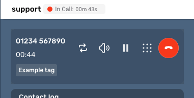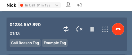 sa-tag-{name} | Voice Webchat Tasks | A tag which will display to the agent against the contact in SmartAgent. The attribute can also be used for filtering reports. The value can be any text string. Common examples include the preferred language spoken by the customer or queue name. The {name} parameter can be replaced by any text string and will automatically display the value in SmartAgent based on the sa-tag- prefix. The {name} parameter itself will not be visible to the agent in SmartAgent.![]() ‘Example tag’ in the screenshot could be set by setting “sa-tag-custom” to “Example tag” in the contact flow. |