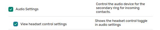 Headset Controls | Enabling this feature provides support for users with WebHID-enabled Jabra headsets to use headset controls such as Mute and Answer Call buttons, and the Busy status light. ![]() ![]() Audio Settings page if both permission are enabled. |