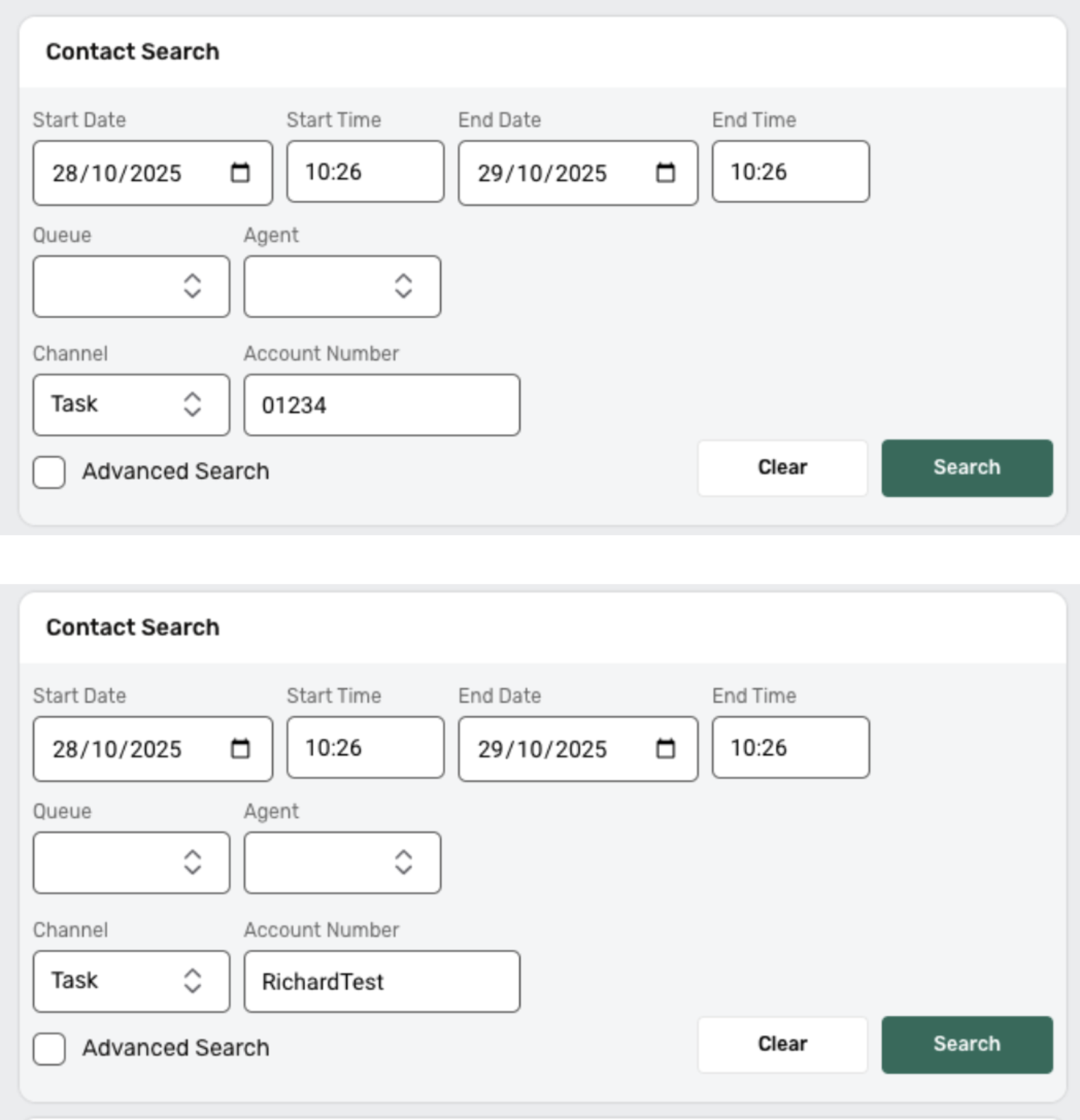 Previously, the Contact Search page automatically loaded customer contact details when opened, which could cause delays and performance issues—particularly for agents who may not need to search immediately.