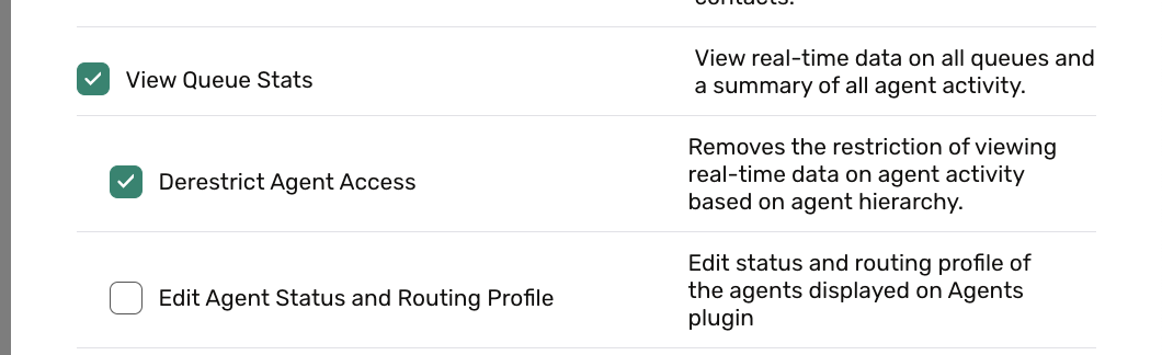 - Separate Permission Controls- Two new sub-permissions have been added under ‘View Real-time Agents Metrics’: